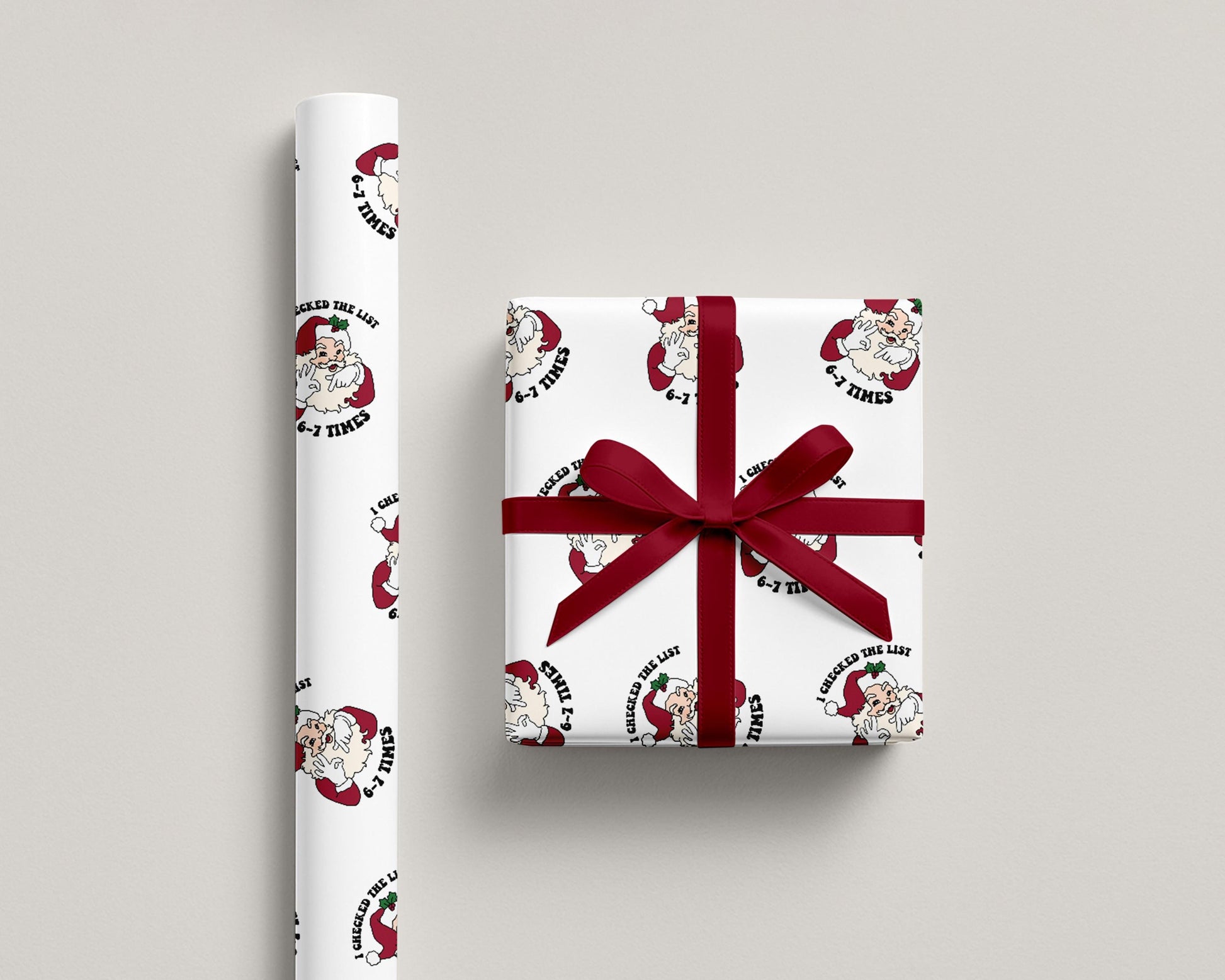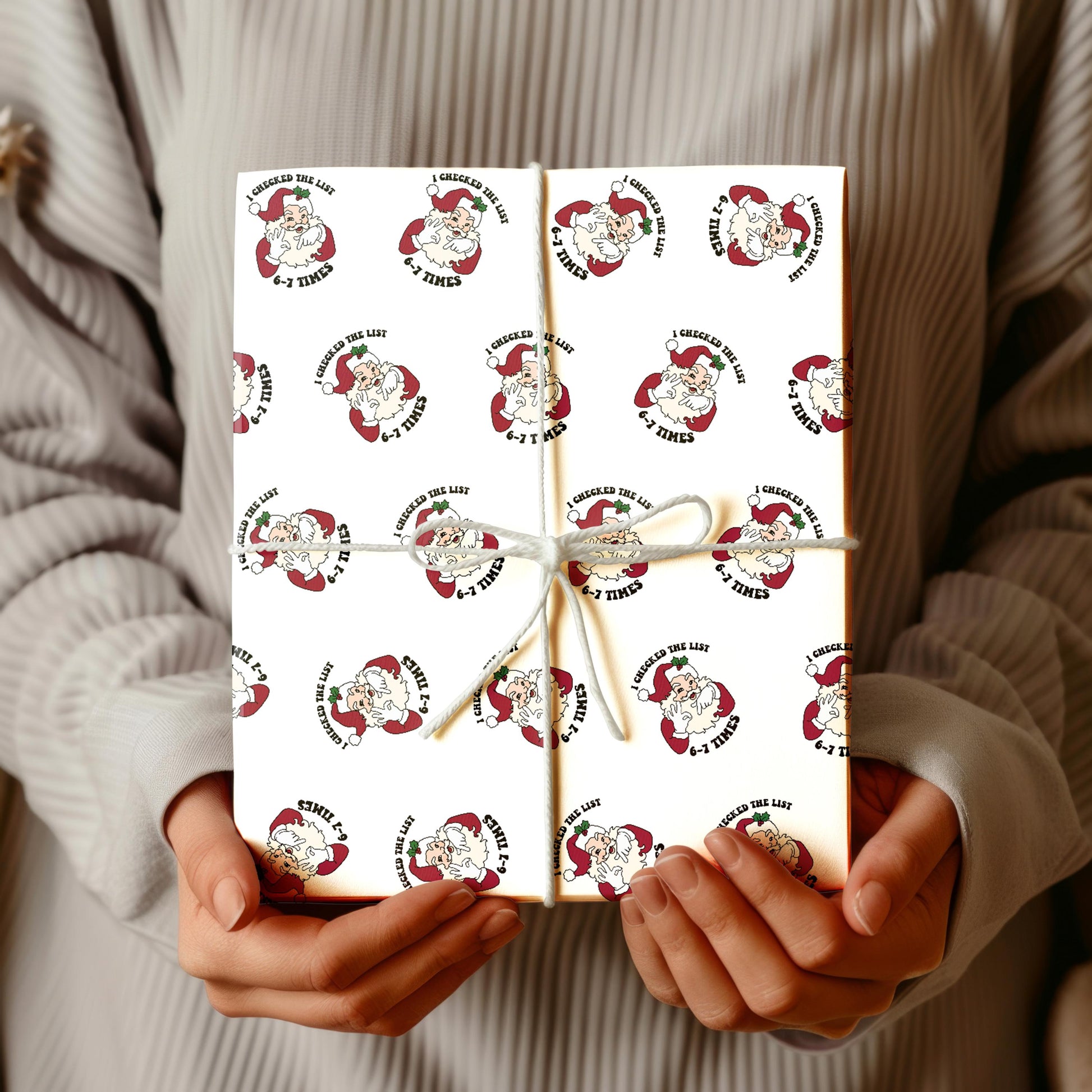 The Funny 6 7 Wrapping Paper features the viral “Santa Says 6 7” meme design, bringing TikTok humor straight to your holiday gifts. Perfect for kids, teens, and tweens, this playful Christmas wrap roll adds a trendy and hilarious twist to festive presents under the tree.