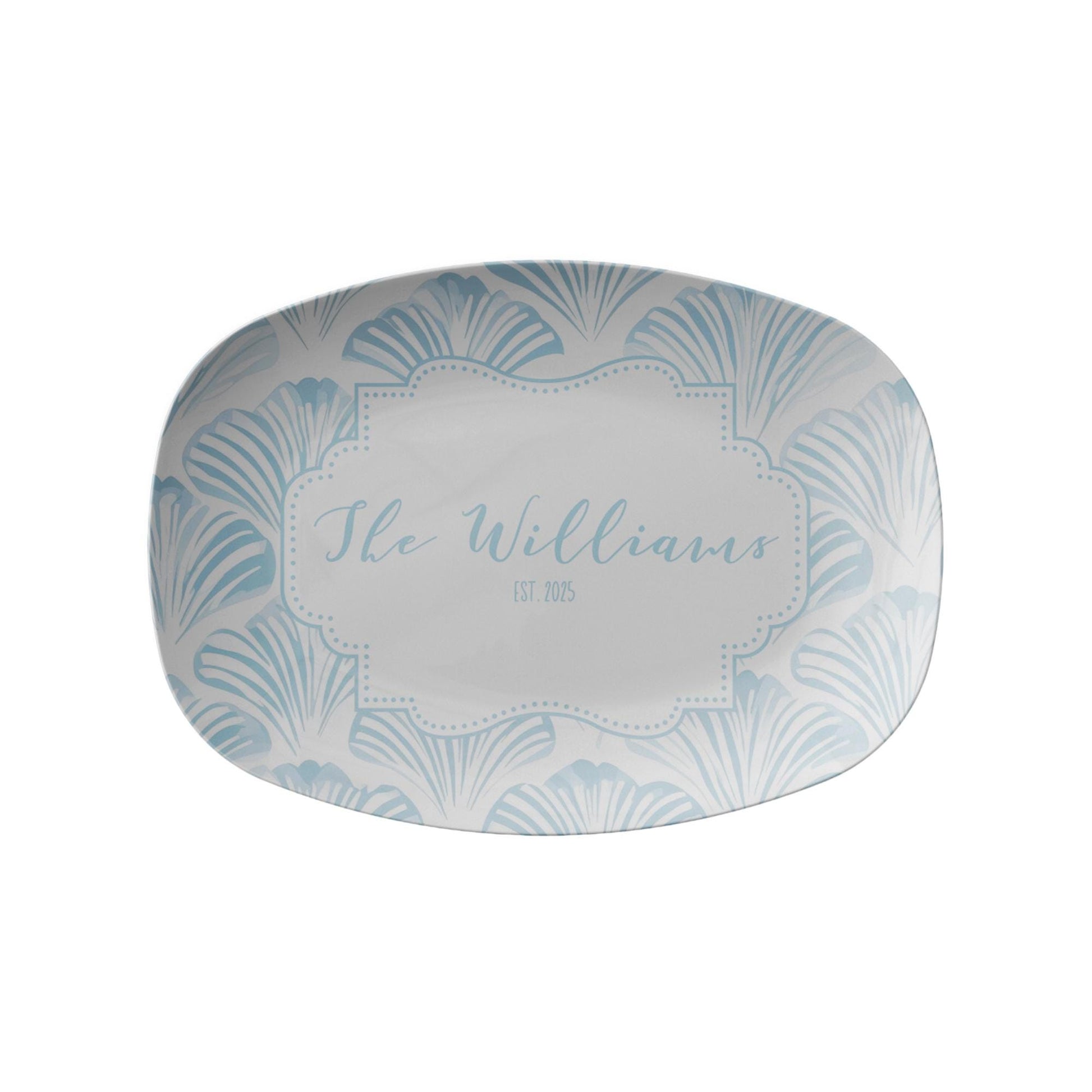 Infuse beachy elegance into your space with this Coastal Shell Personalized Platter. Featuring bold cobalt‑blue starfish and seashell motifs on a crisp white background, this tray adds seaside charm to brunches, poolside gatherings, or cottage décor. Personalize it with your family name and established year for a keepsake that’s both functional and stylish.