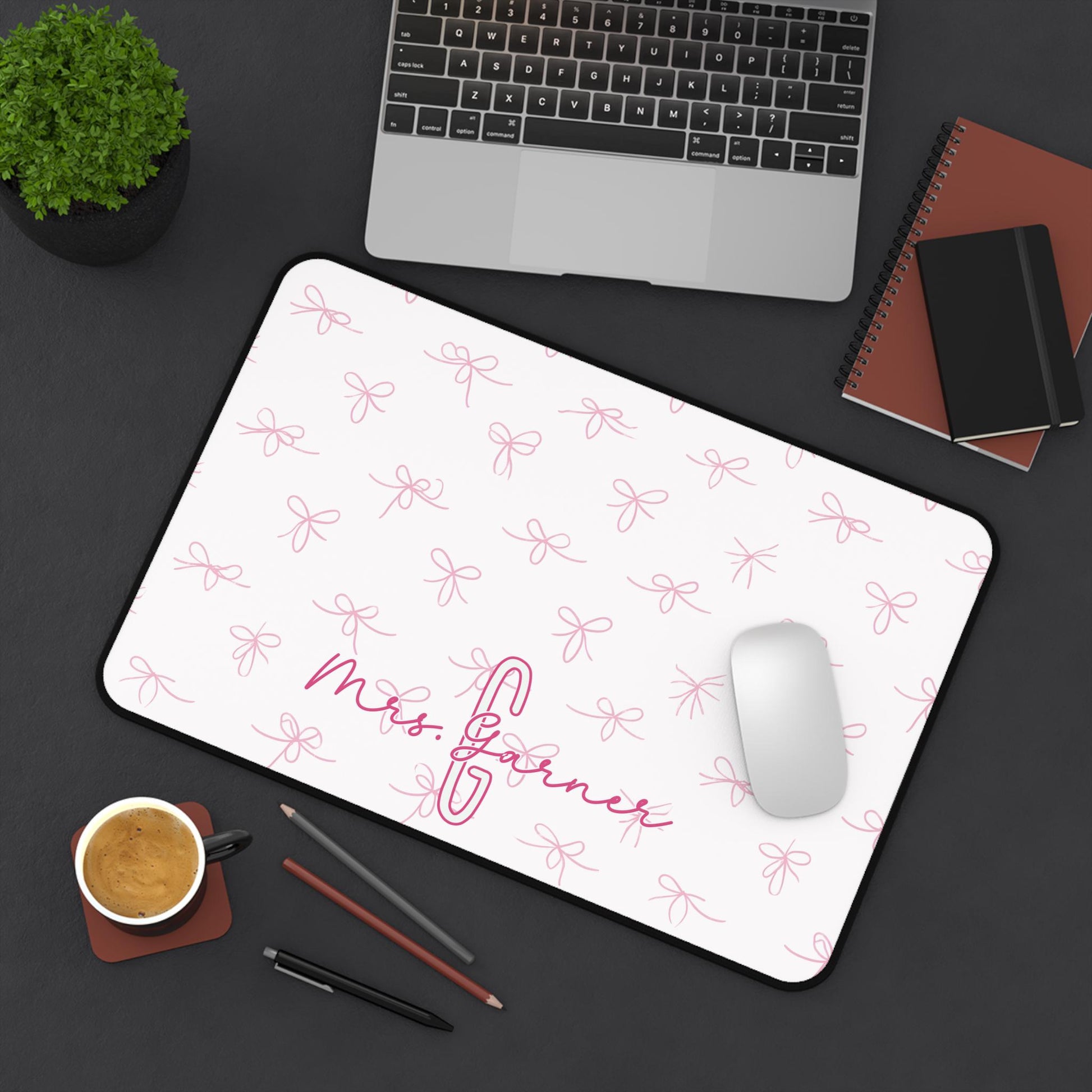 A Name Desk Pad adds a personal touch to your workspace and makes for an excellent Personalized Desk Decor item. This Monogrammed Home Office accessory is perfect as a Teacher Gift or Custom Decor for a dorm room, making it one of the best Custom Office Gifts.