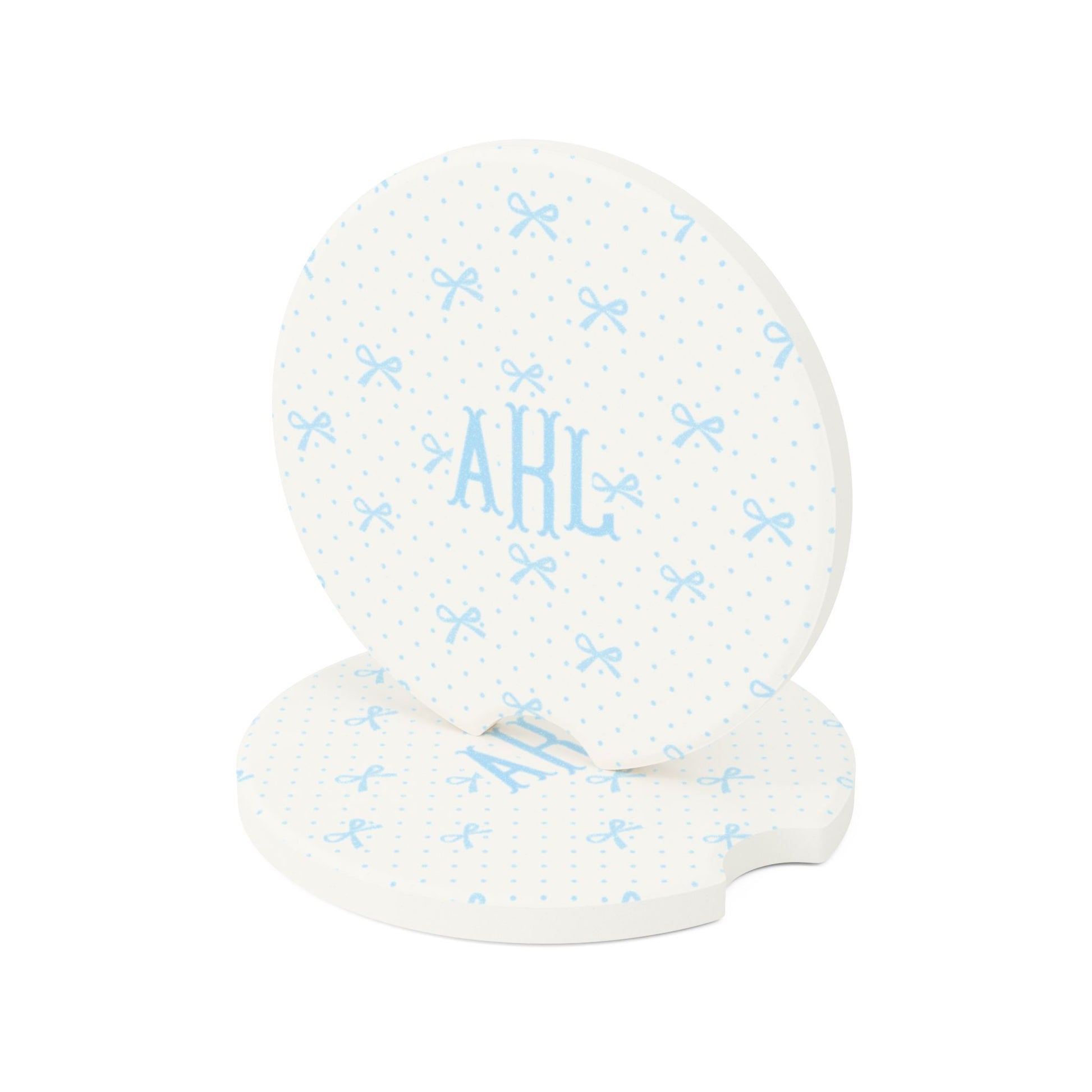 Custom Monogrammed Coquette Car Coaster Blue Bows