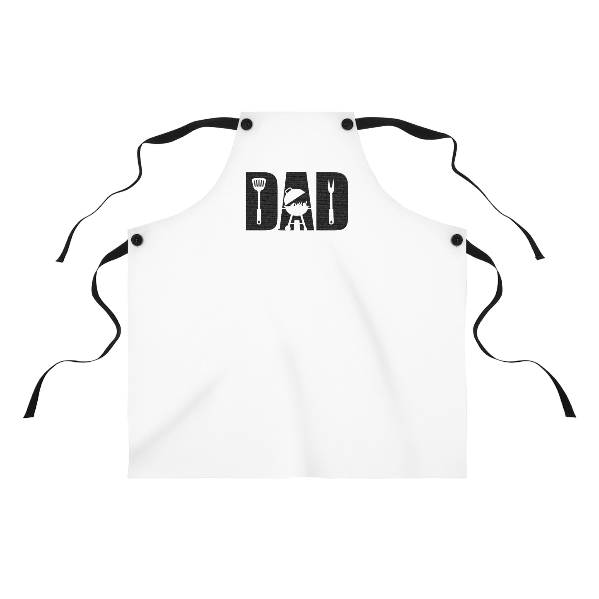 This apron brings the backyard grill to the kitchen with quiet confidence. Bold, block letters spell DAD with each letter filled by a grilling icon — spatula, grill, and fork — creating a simple, rugged emblem that sits over the chest. Lightweight polyester keeps the print crisp and the apron quick-drying between shifts at the grill. Removable black twill straps let the wearer adjust fit or swap styles. It’s the kind of apron a hands-on dad reaches for when he wants to focus on the food and the moment: flipping burgers, manning the smoker, or guiding little helpers through their first barbecue duties.