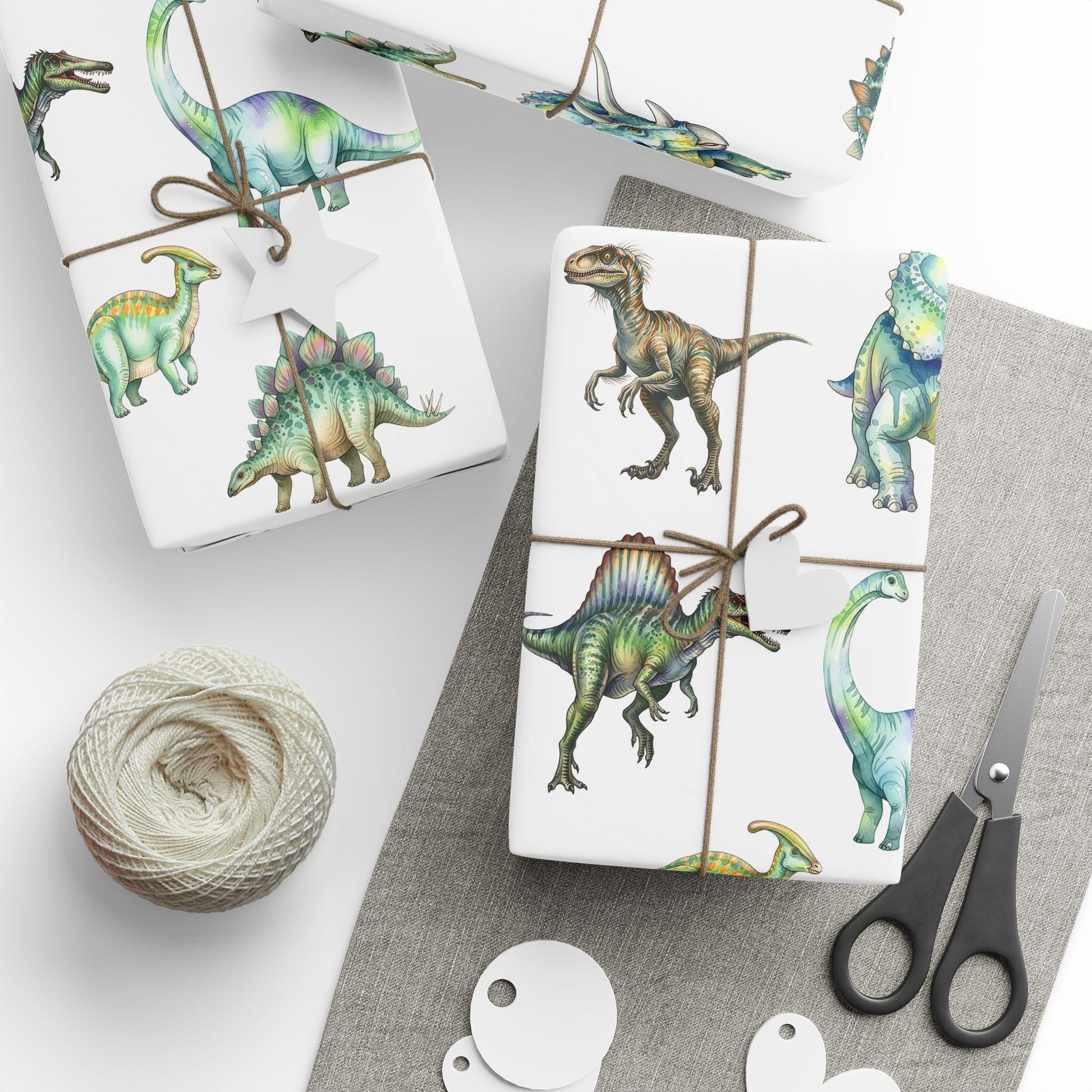 This cheerful dinosaur wrapping paper brings a playful, hand-painted charm to celebrations for kids and grown-ups who love whimsy. Watercolor-style dinos in soft greens, teals and earthy tones march across a bright white background, giving each gift a light, joyful energy. The smooth paper lies flat for easy folding, and you can choose a glossy sheen for a lively pop or a matte finish for a subtle, artful look. Available in multiple lengths to cover small treats or long bouquets, the one-sided print keeps the design clean and vibrant while a small white trim with a QR code stays unobtrusive at the edge. Use it to wrap birthday surprises, party favors, or to add an extra touch of delight to school and playroom gifts.