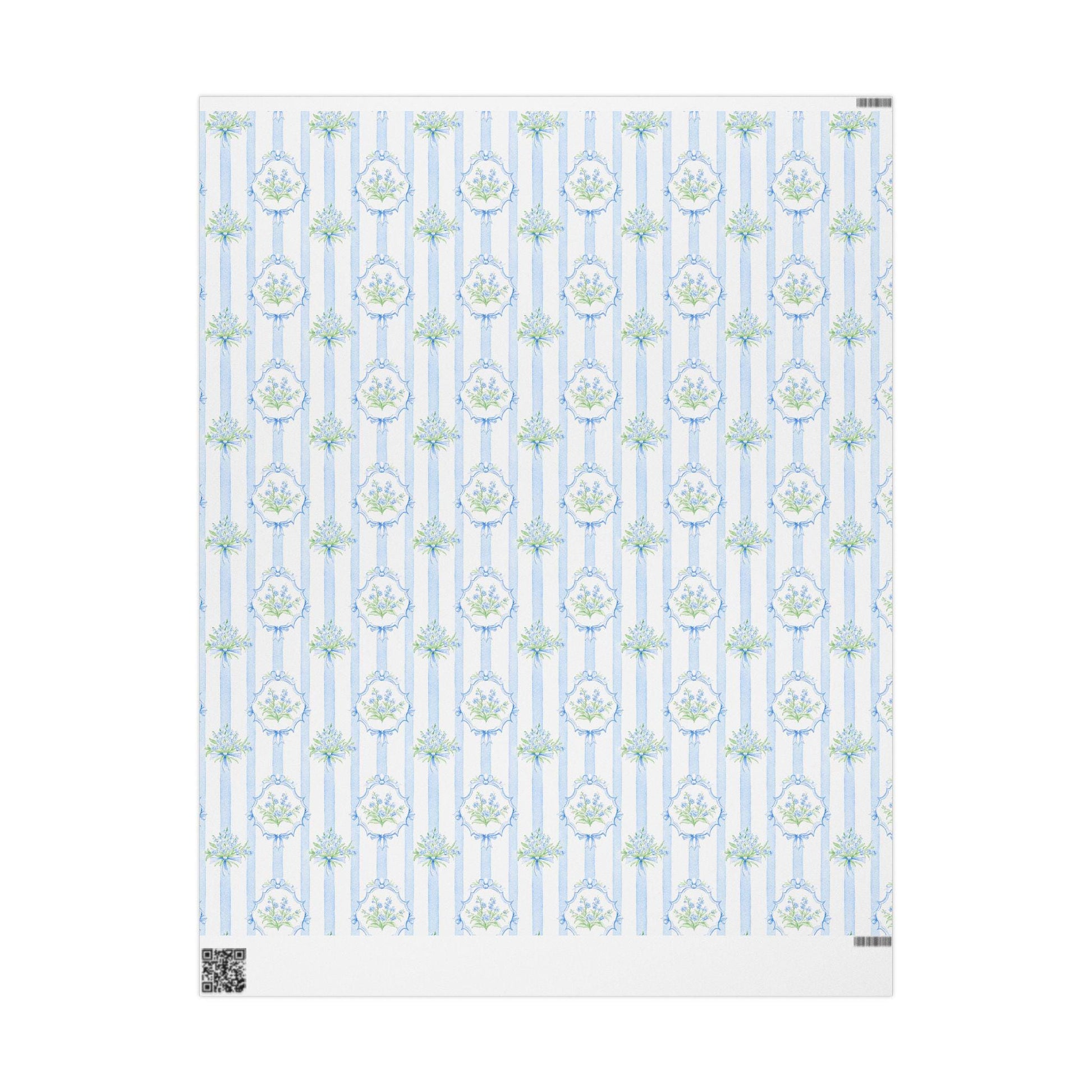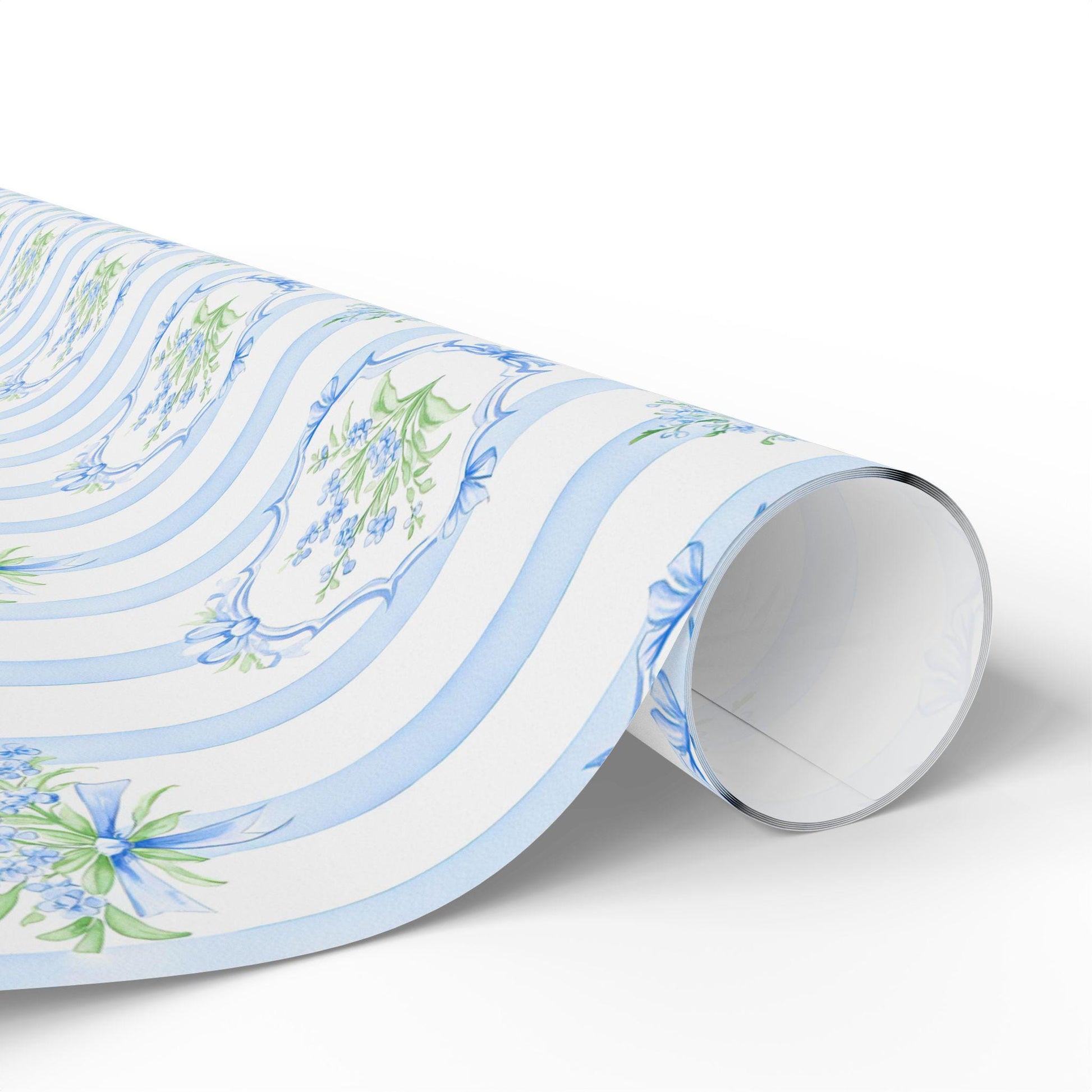 Wrap your gifts in timeless elegance with this grandmillennial floral wrapping paper featuring delicate blue stripes, ribbon bows, and vintage-style floral medallions. Perfect for birthdays, weddings, bridal showers, Mother’s Day, or any special occasion, this design blends classic botanical charm with a fresh, romantic aesthetic.