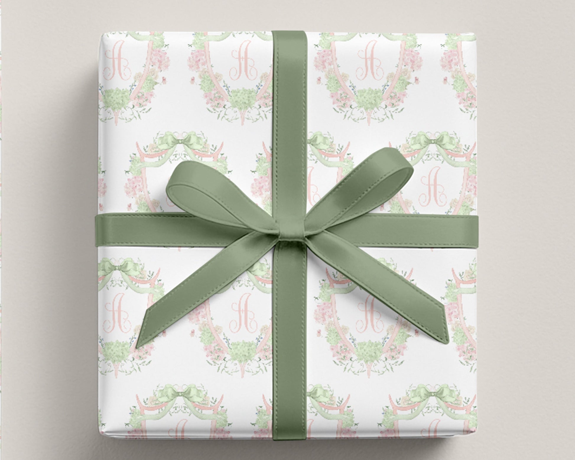 Hydrangea Crest Monogram Wrapping Paper