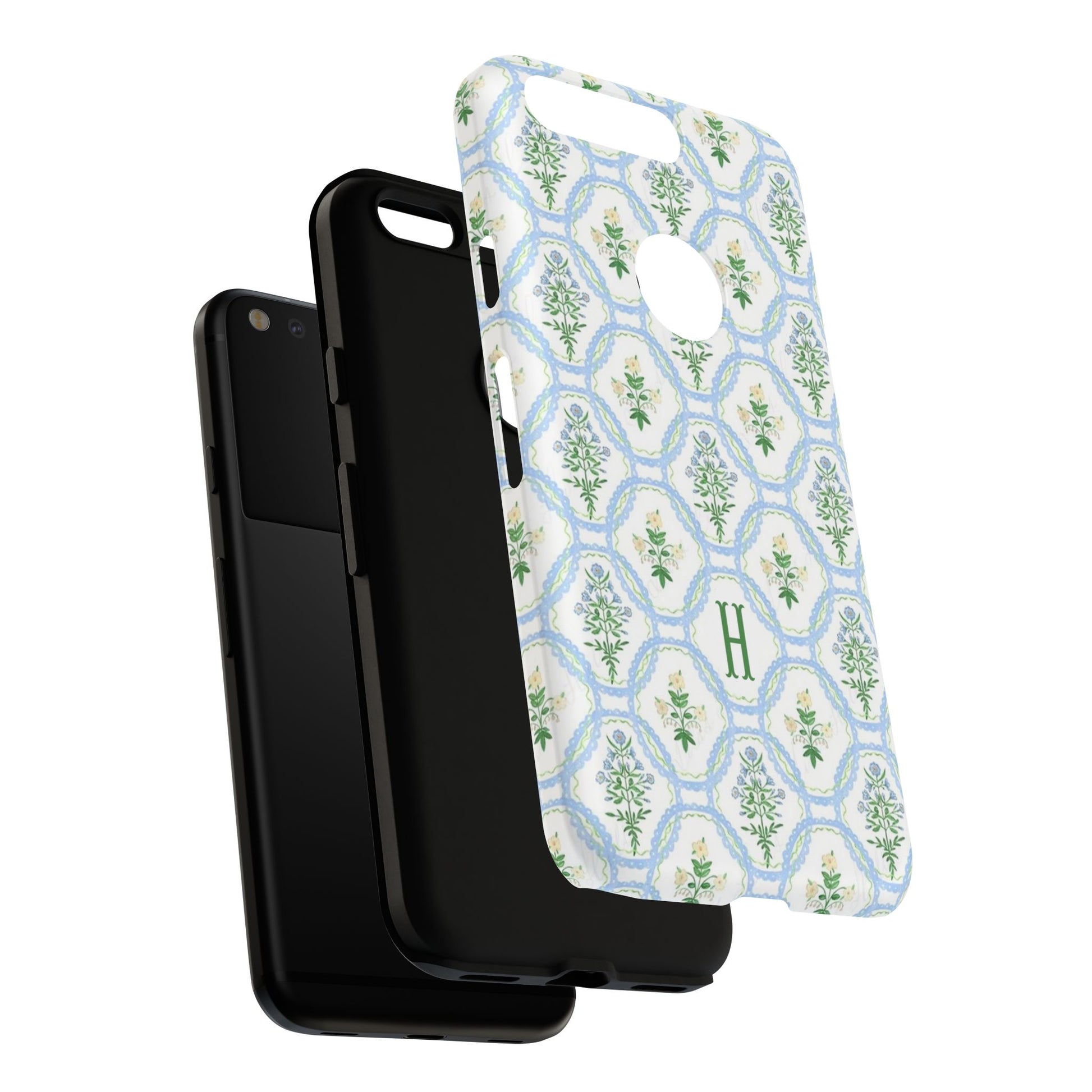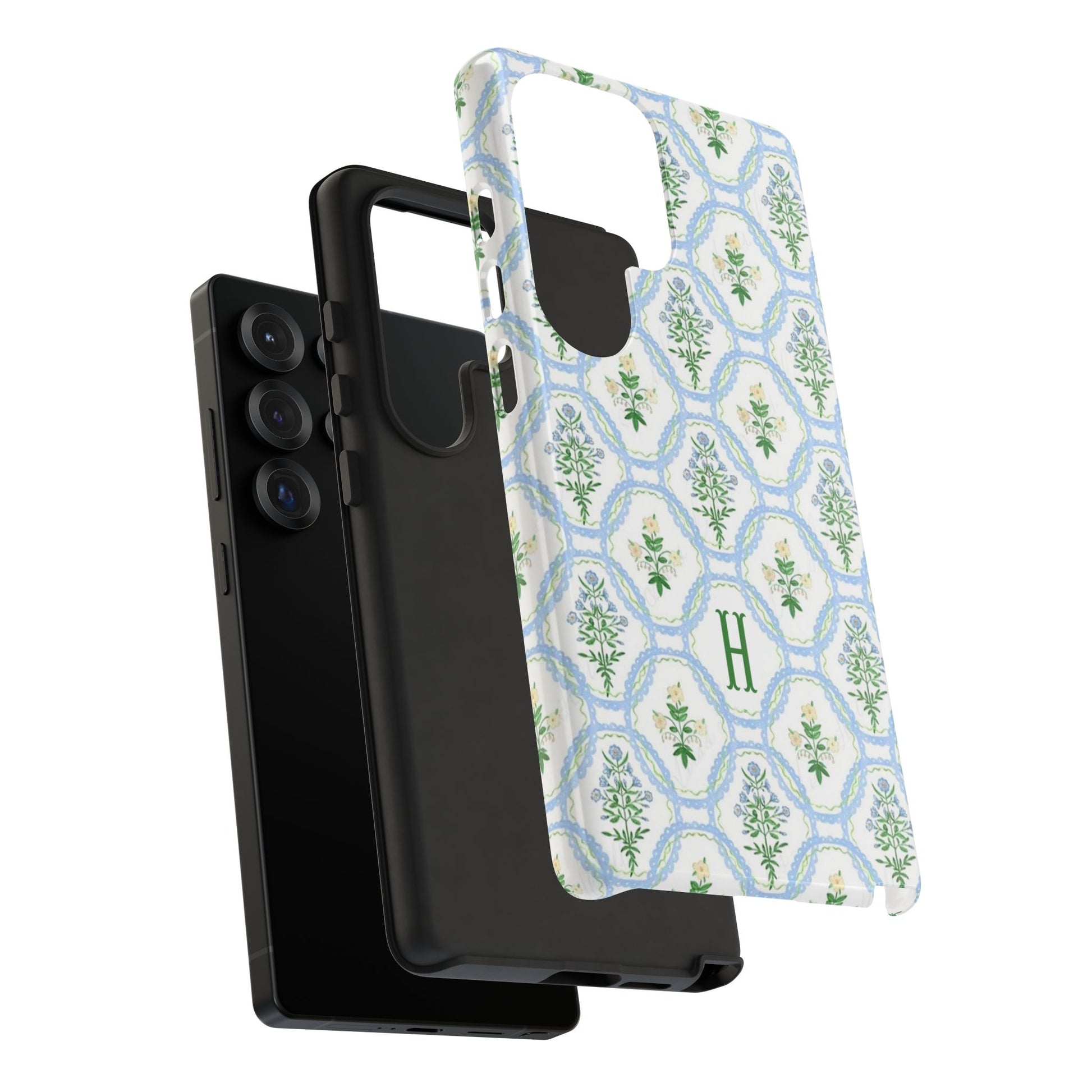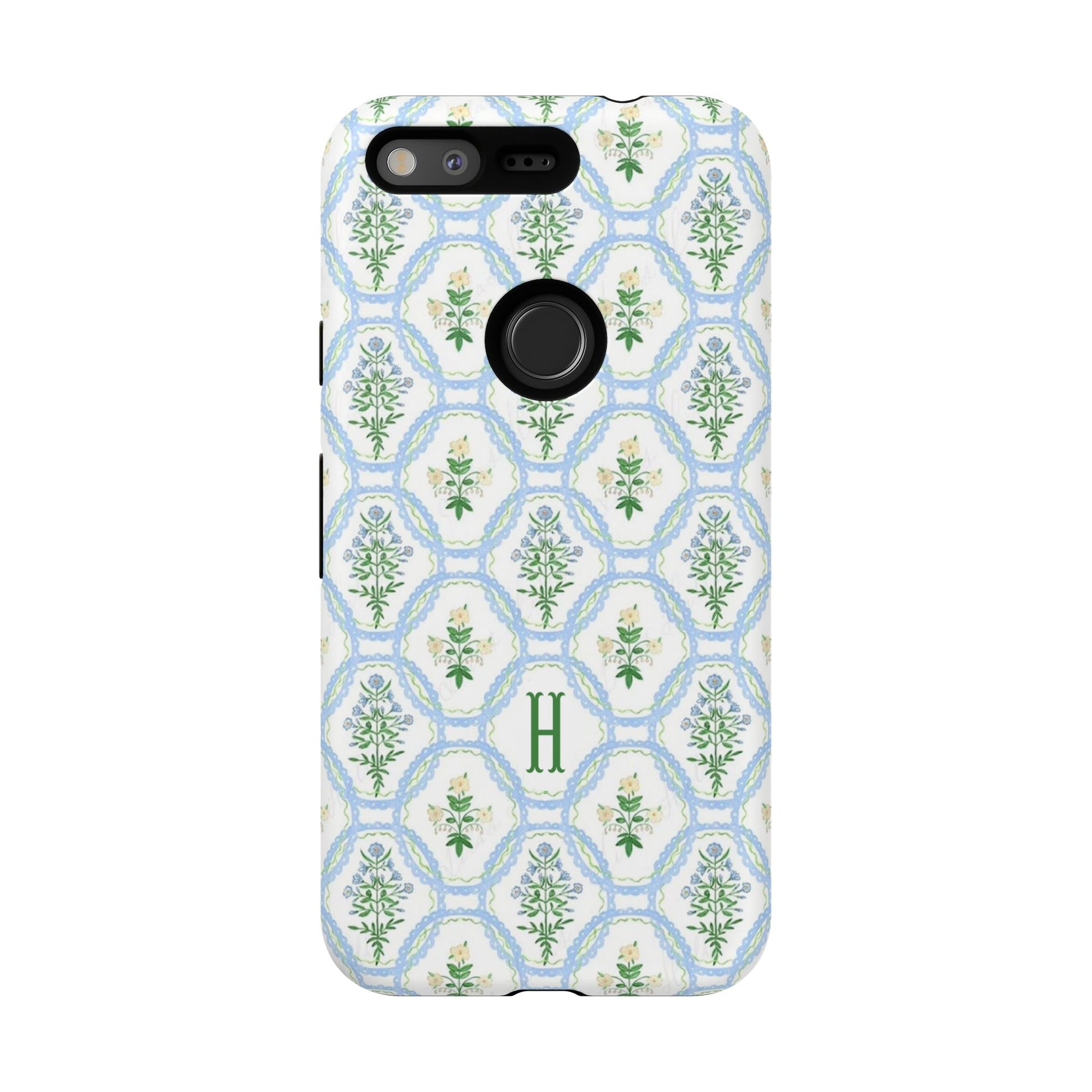 Blue Floral Motif Monogram Phone Case Personalized