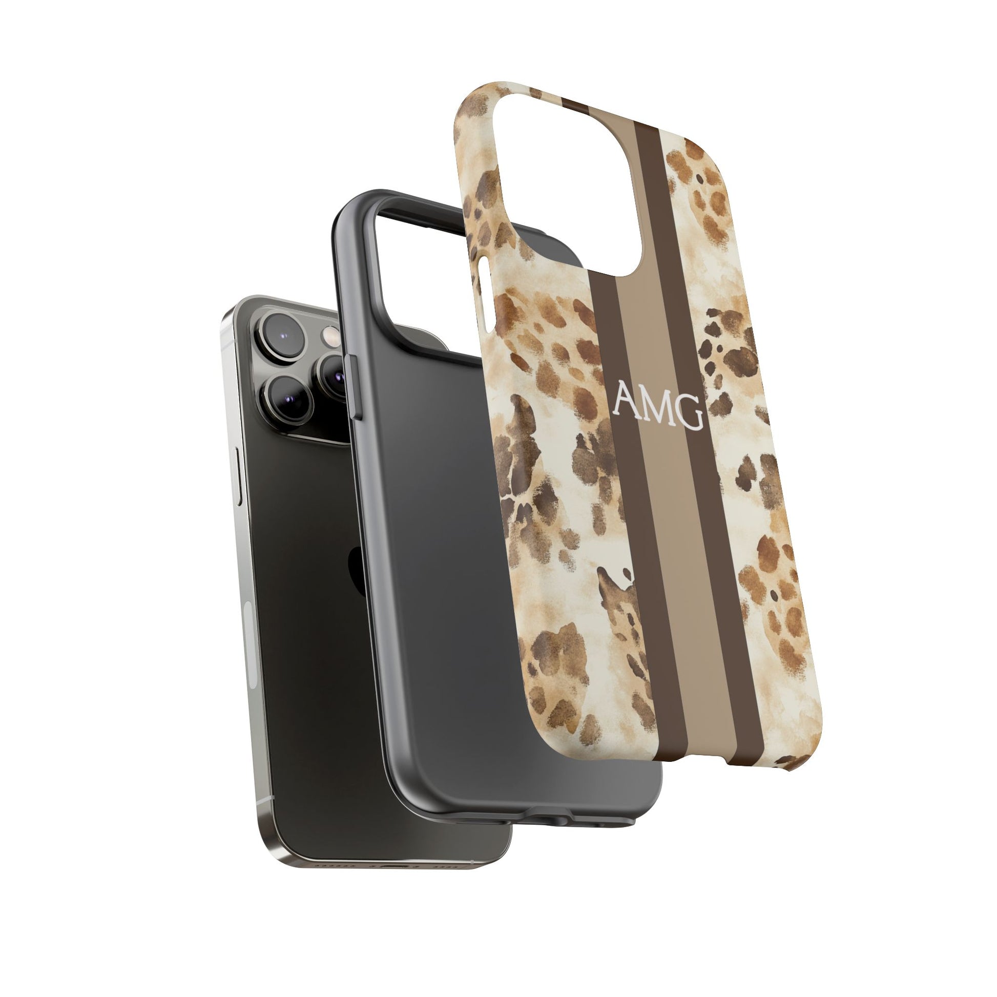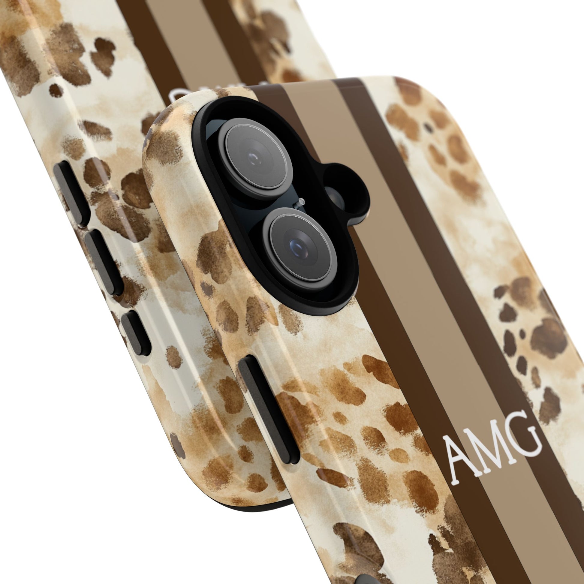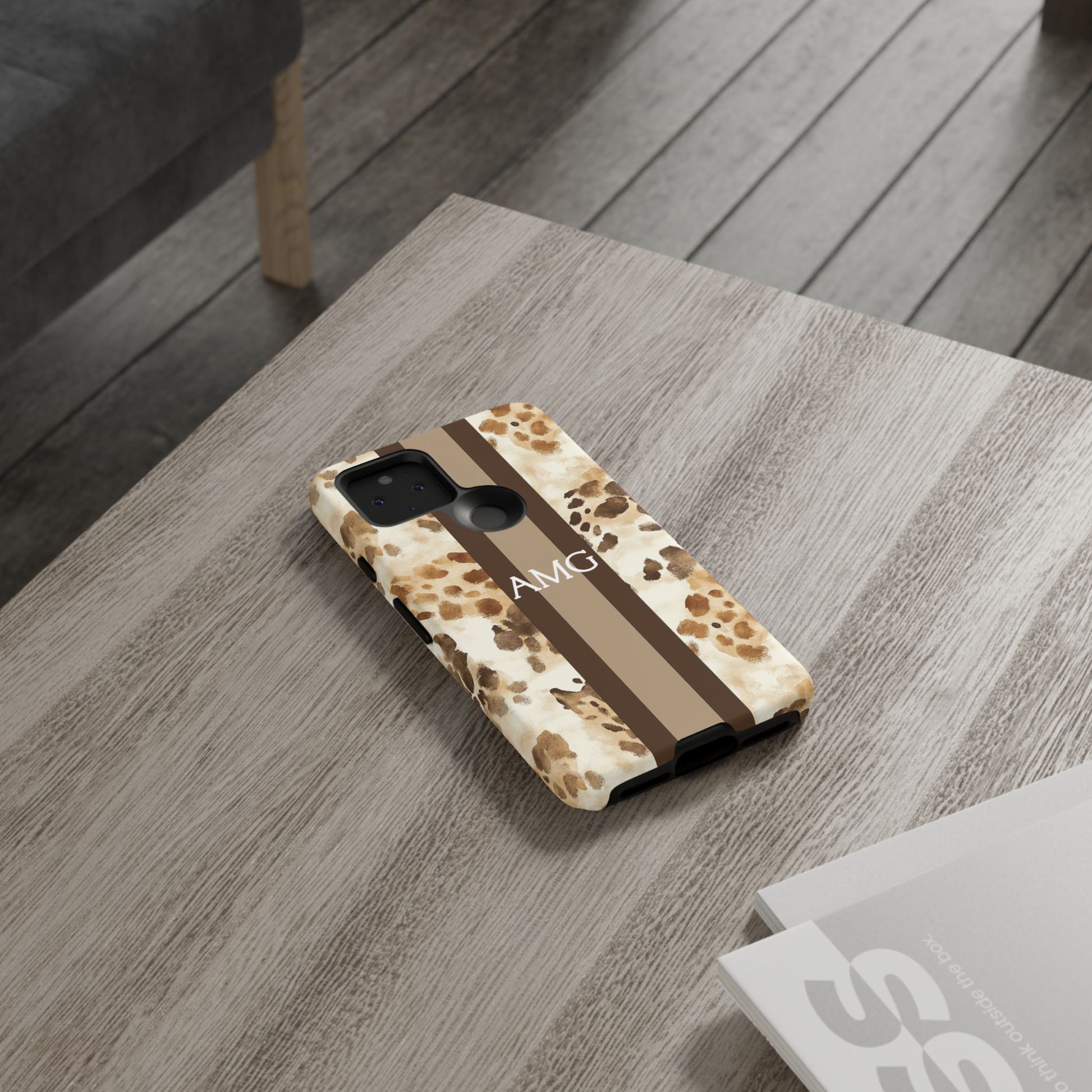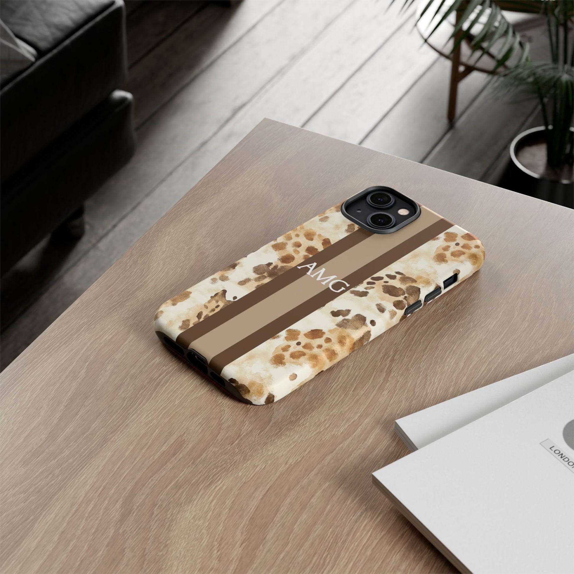 Warm neutrals + chic print = instant favorite. This Monogram phone case features a watercolor giraffe-inspired pattern in soft tans and browns with a clean center stripe, finished with your initials for a sleek, elevated look. It’s a Trendy iPhone case that’s stylish year-round—neutral enough to match everything, bold enough to stand out.