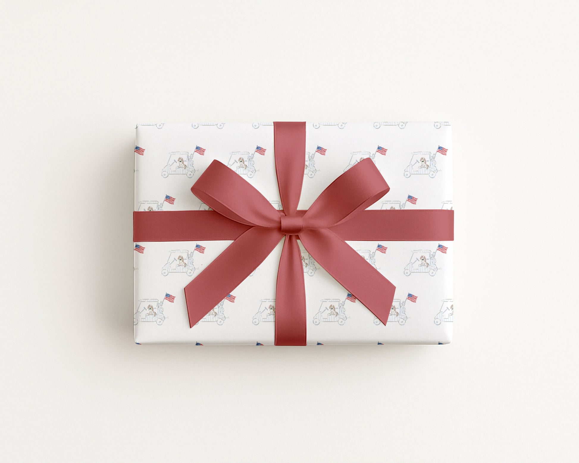 Celebrate summer in red, white, and blue style with this adorably patriotic dog gift wrap featuring pups riding in golf carts waving American flags! ππΊπΈ