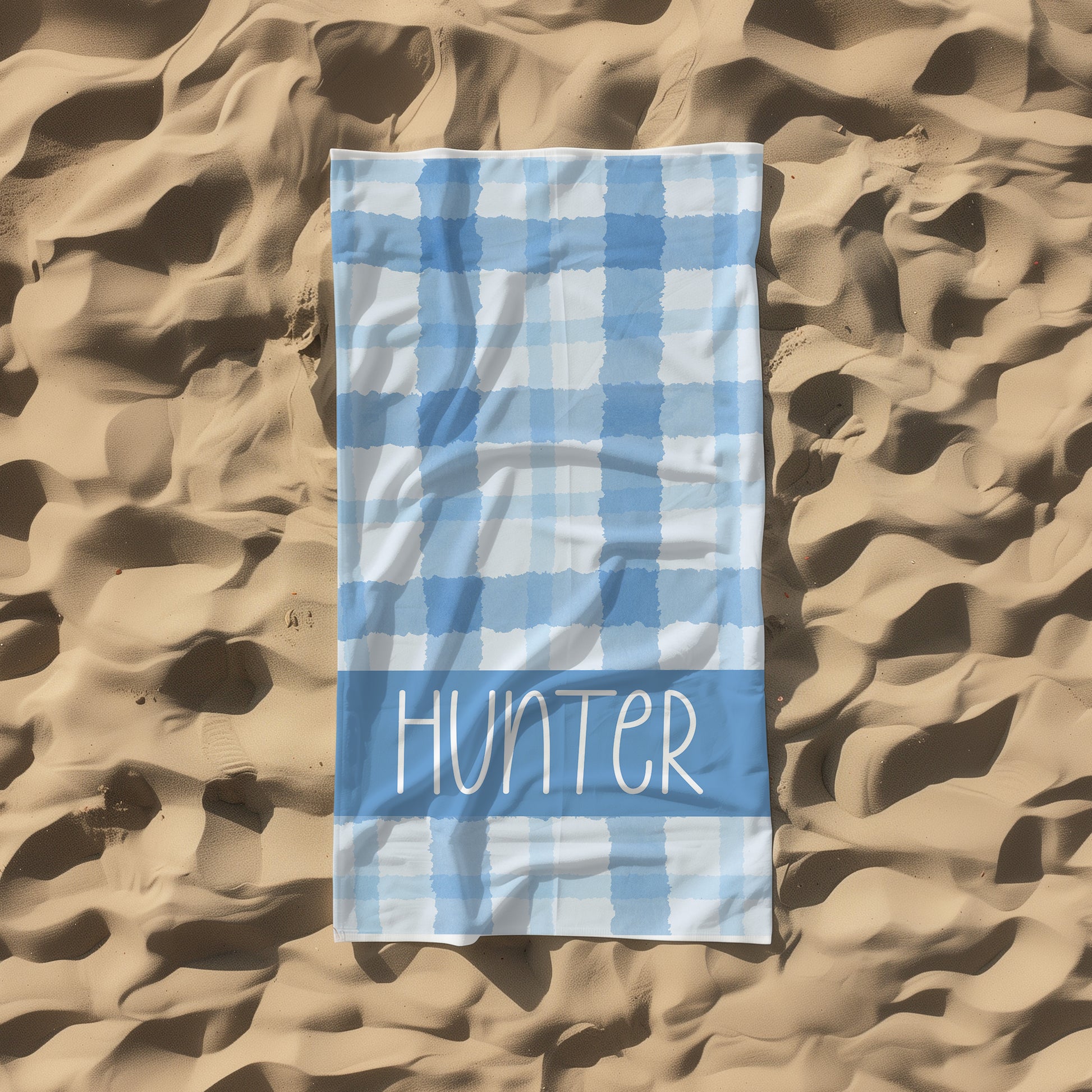 Classic, preppy, and easy to spot—this Personalized Blue Plaid Beach Towel is perfect for pool days, beach trips, and summer camp. The soft watercolor-style plaid gives it that coastal/preppy vibe, and the bold name band keeps it from getting “accidentally borrowed.”Perfect forBeach, pool, lake house, and vacation travelSummer camp & sleepaway camp (name is easy to see!)Swim lessons, swim team, water park daysBirthday gifts, sibling sets, back-to-school summer essentialsDesign detailsWatercolor-style blue plaid / gingham patternPersonalized name across a bold bandClean, classic look for kids, teens, or adultsHow to orderChoose your size/options from the dropdown.Enter the name exactly as you want it printed.Checkout—your towel is made to order.
