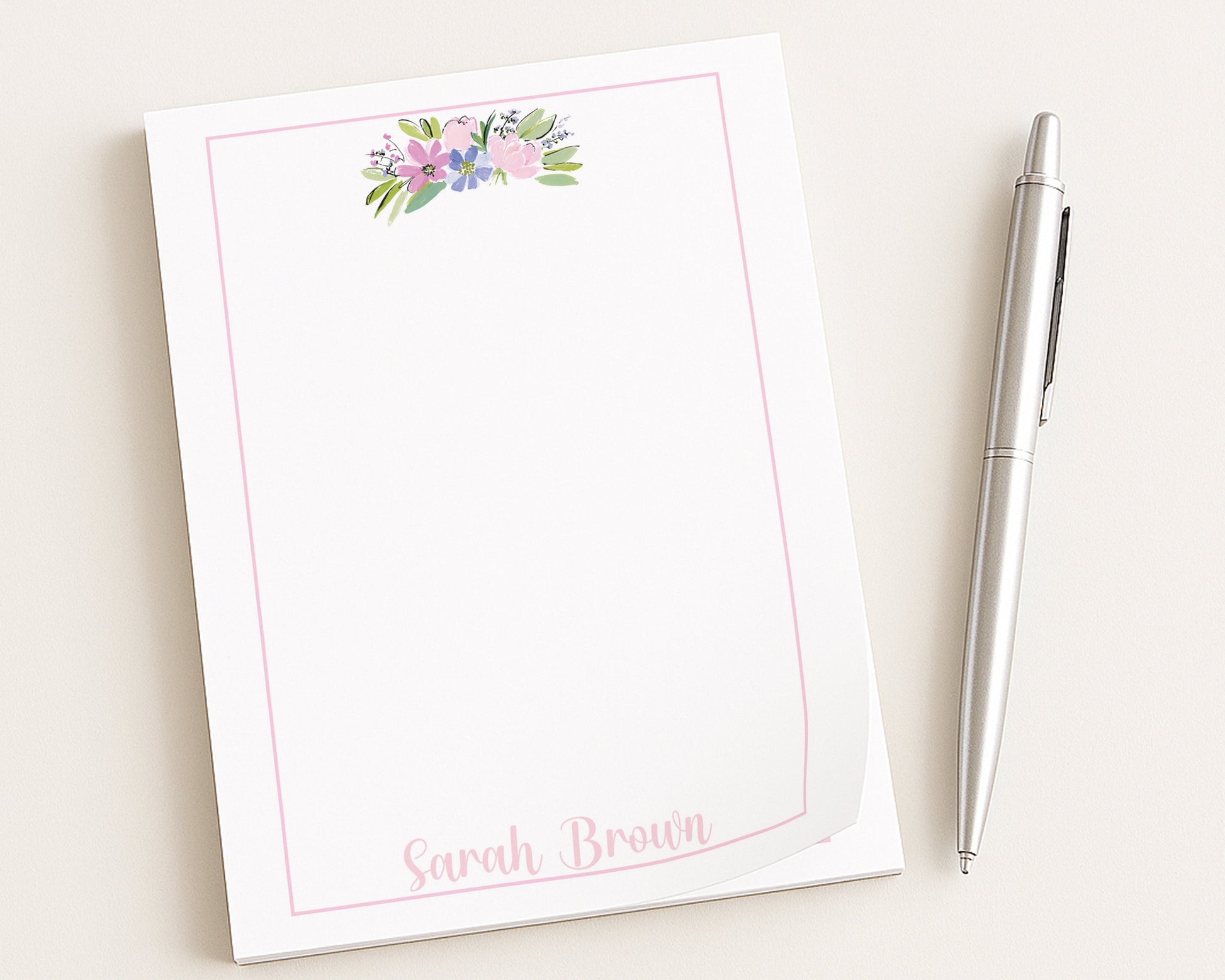 This listing is for a Personalized Floral Swag Notepad - use it for writing lists, reminders, notes, etc. This notepad features a beautiful watercolor floral swag and your name printed at the bottom.