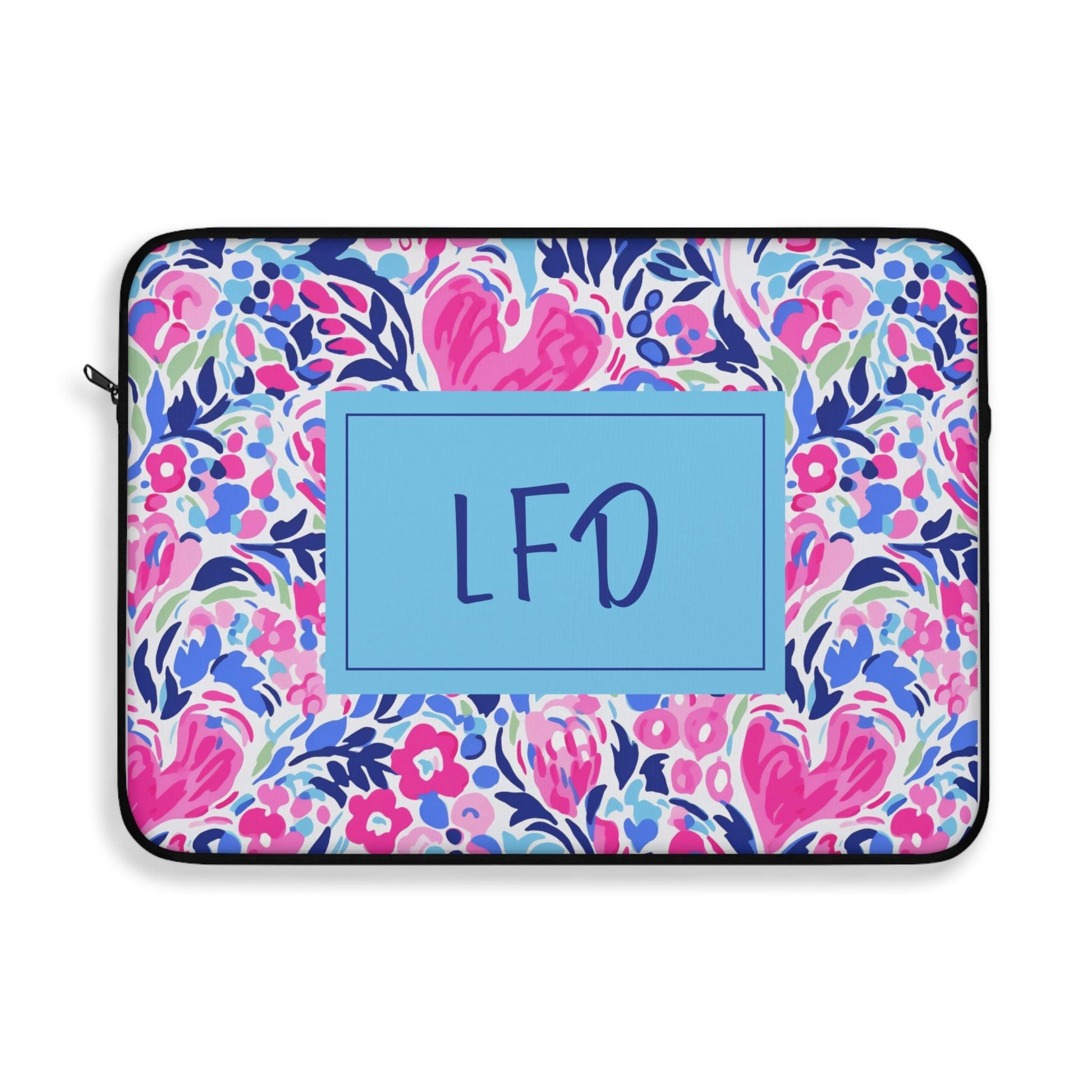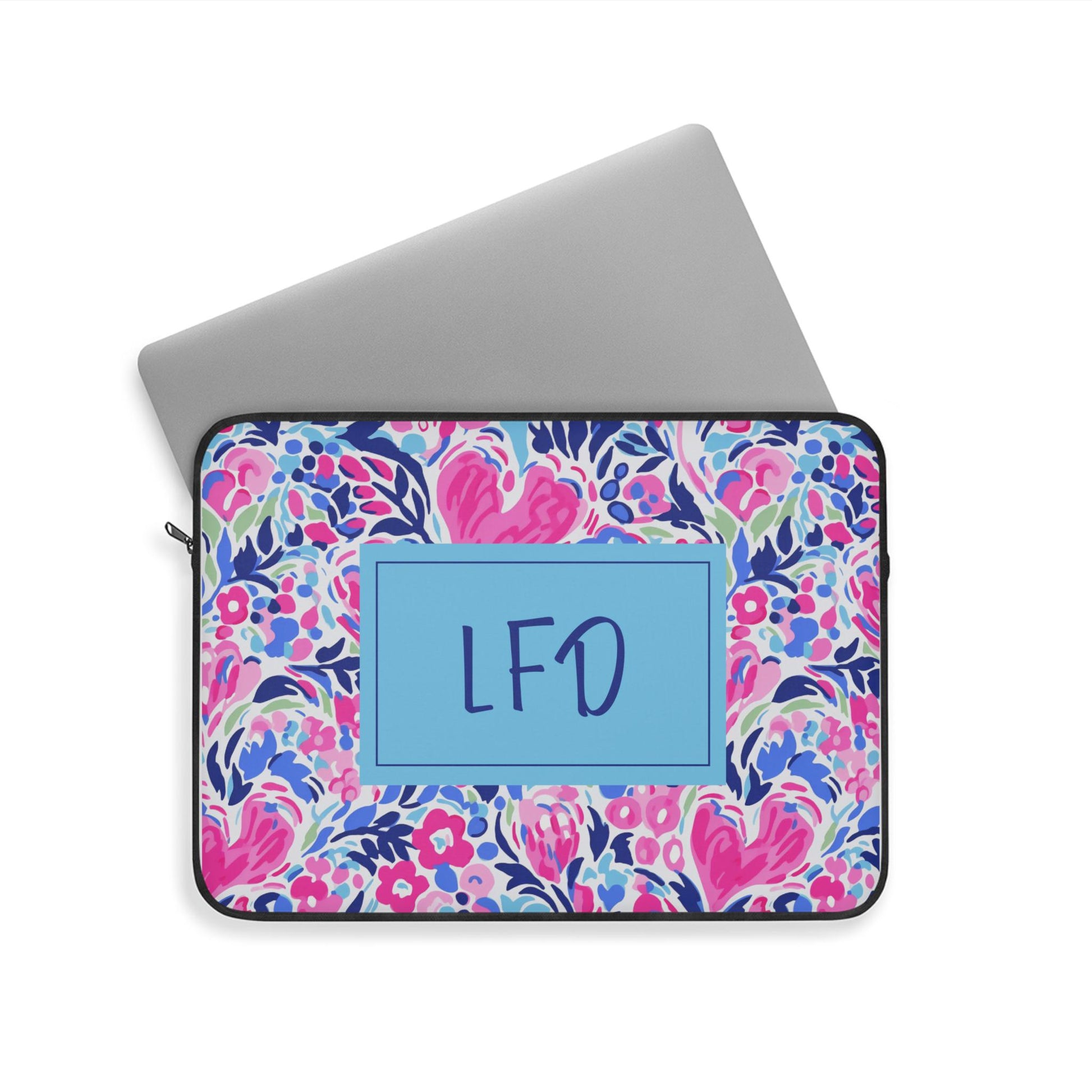 Bring bold color and personality to your everyday routine with this personalized pink heart laptop sleeve! Featuring a vibrant preppy print in shades of pink, blue, and coral, this cheerful design adds a pop of style while keeping your laptop safe and secure.