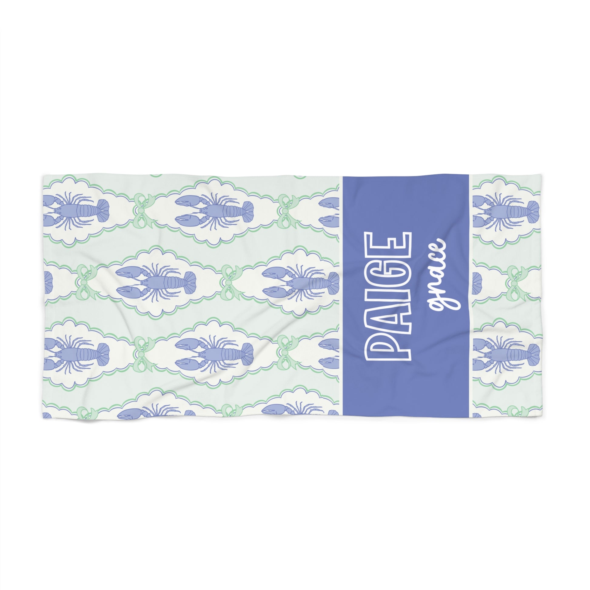 A classic coastal look with a preppy twist—this Personalized Lobster Beach Towel features a soft blue lobster motif with dainty ribbon accents and a bold custom name band across the center. Perfect for pool days, beach trips, and summer camp (and it helps prevent “whose towel is this?” chaos).Why you’ll love itCustomized with your name (first + optional second line)Preppy lobster + ribbon pattern with a clean coastal paletteCenter name band makes it easy to spot at the pool or campGreat for kids, tweens, teens, and anyone who loves a New England vibePerfect forSummer camp / swim team / sleepoversBeach vacations, lake weekends, pool partiesBirthday gifts, graduation gifts, bridesmaid “beach weekend” giftsMatching sibling / family sets