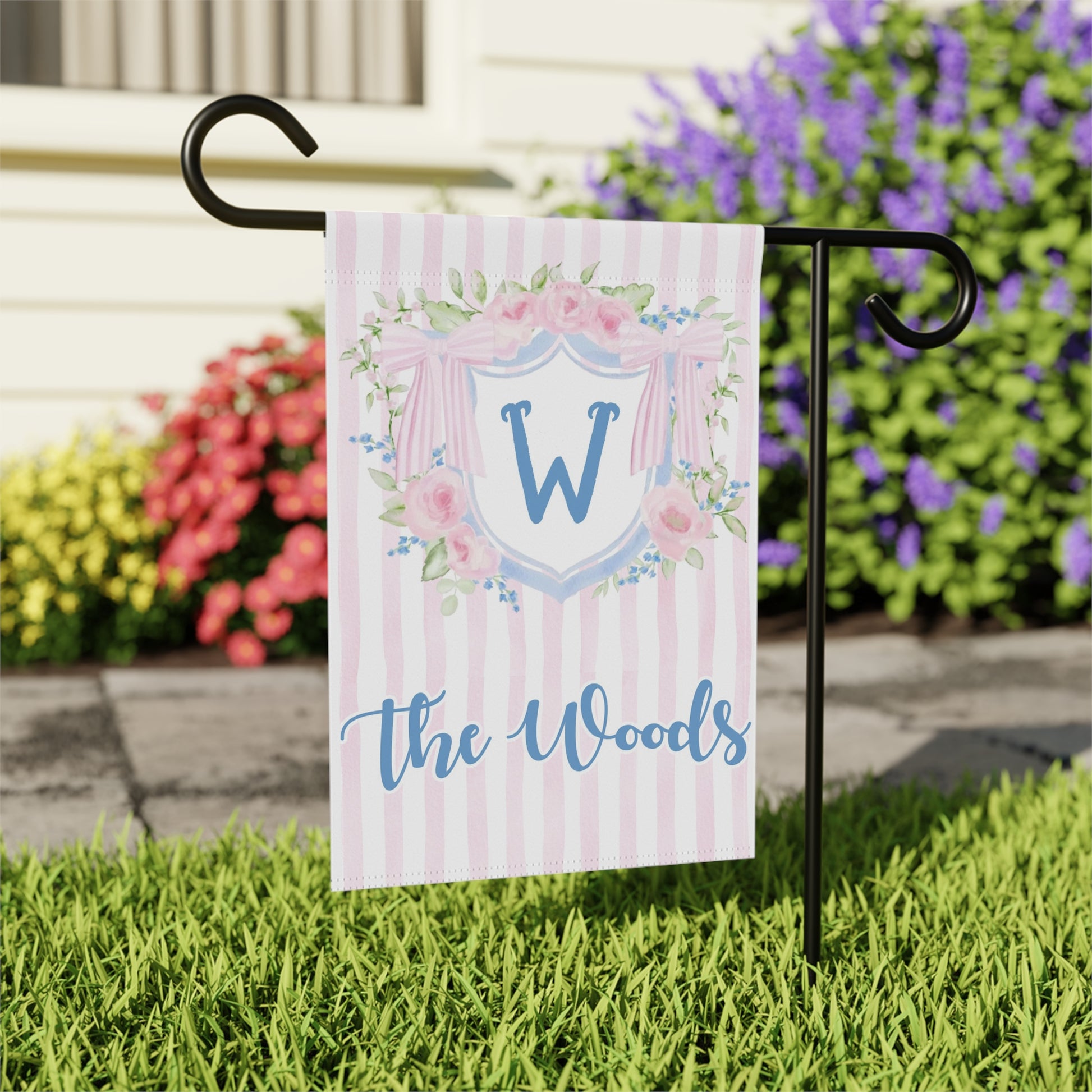 Personalized Pink Floral Monogram Garden Flag