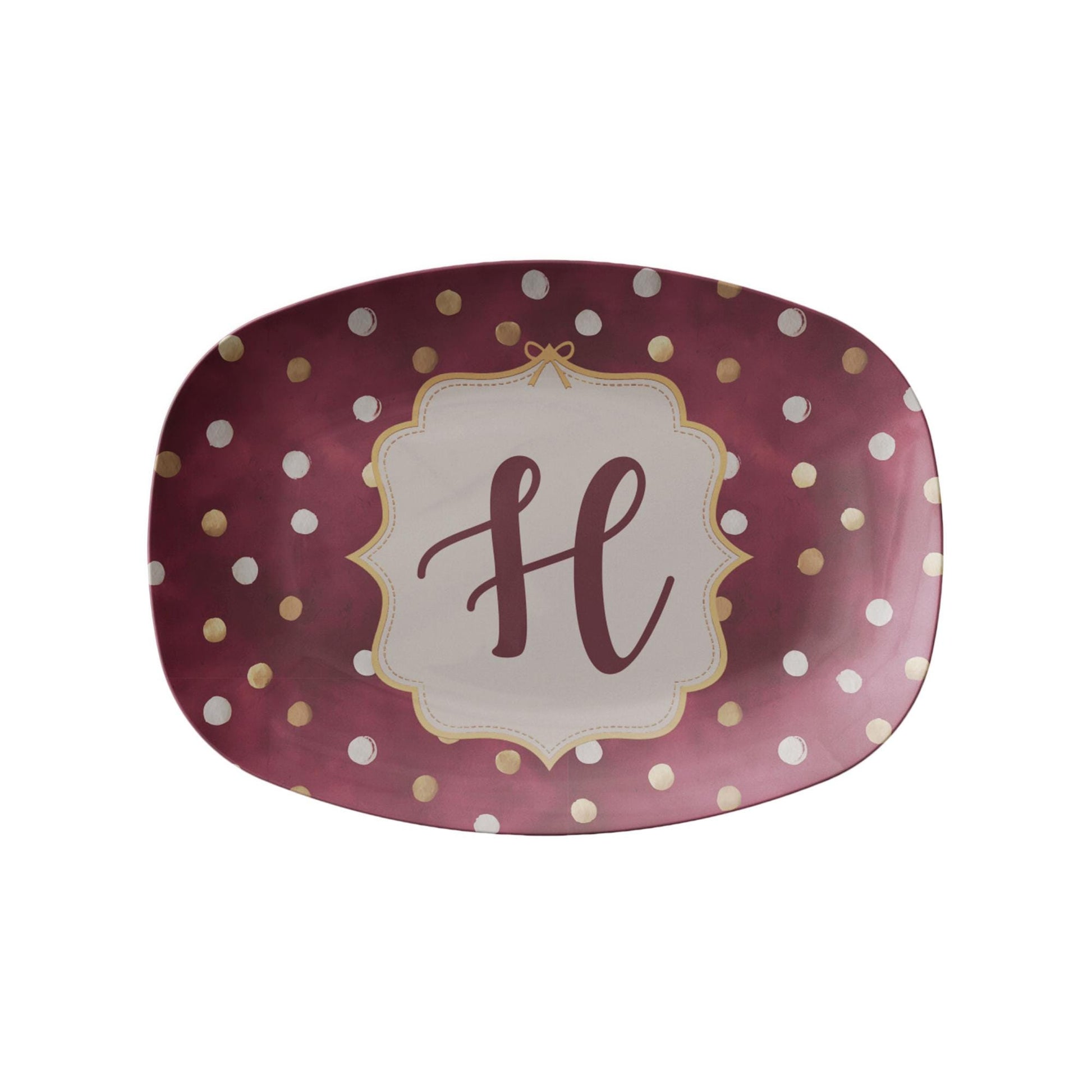 Add a touch of warm sophistication to your holiday table with this personalized burgundy and gold polka dot platter. With its deep, luxe tones and hand-painted aesthetic, this piece perfectly blends classic holiday charm with a modern, elevated look that complements any festive home.
