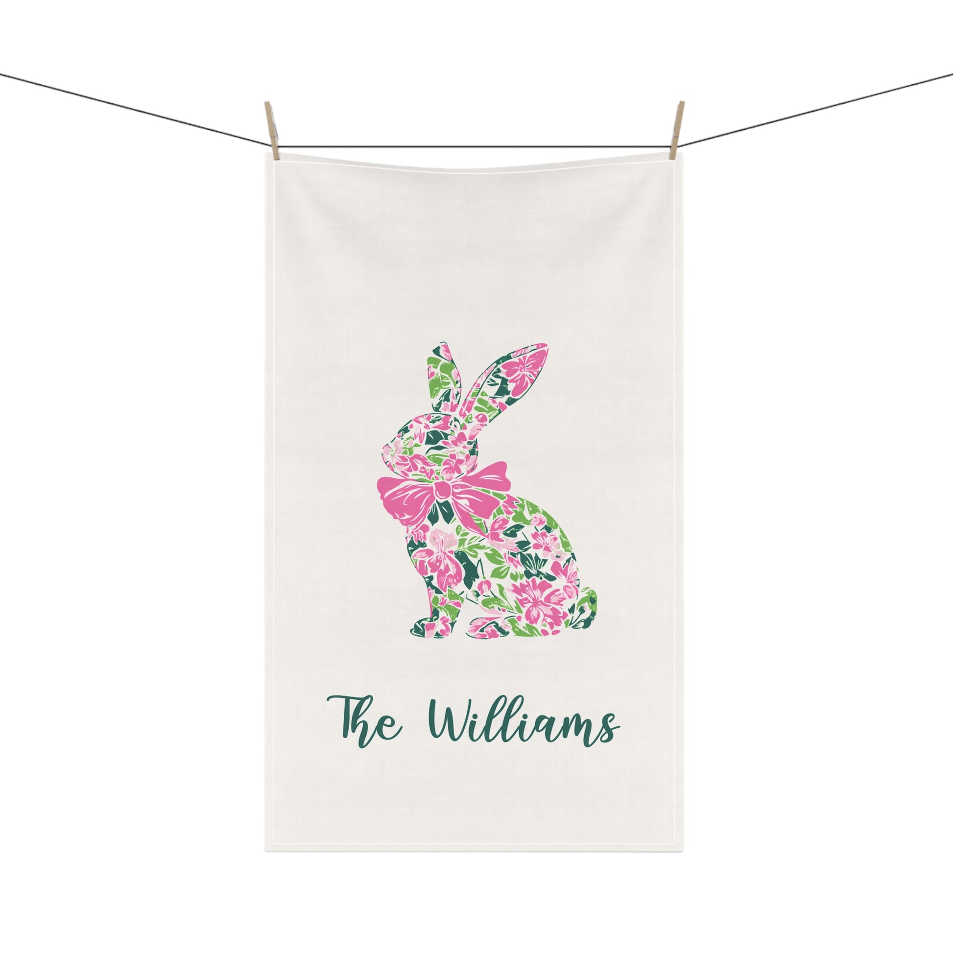 Bright, preppy, and made for spring—this personalized Easter tea towel features a chic pink + green floral bunny with a bold bow and your custom family name (example shown: “The Williams”). It’s the perfect mix of classic and fun for a preppy kitchen, Easter brunch, or a fresh seasonal refresh.