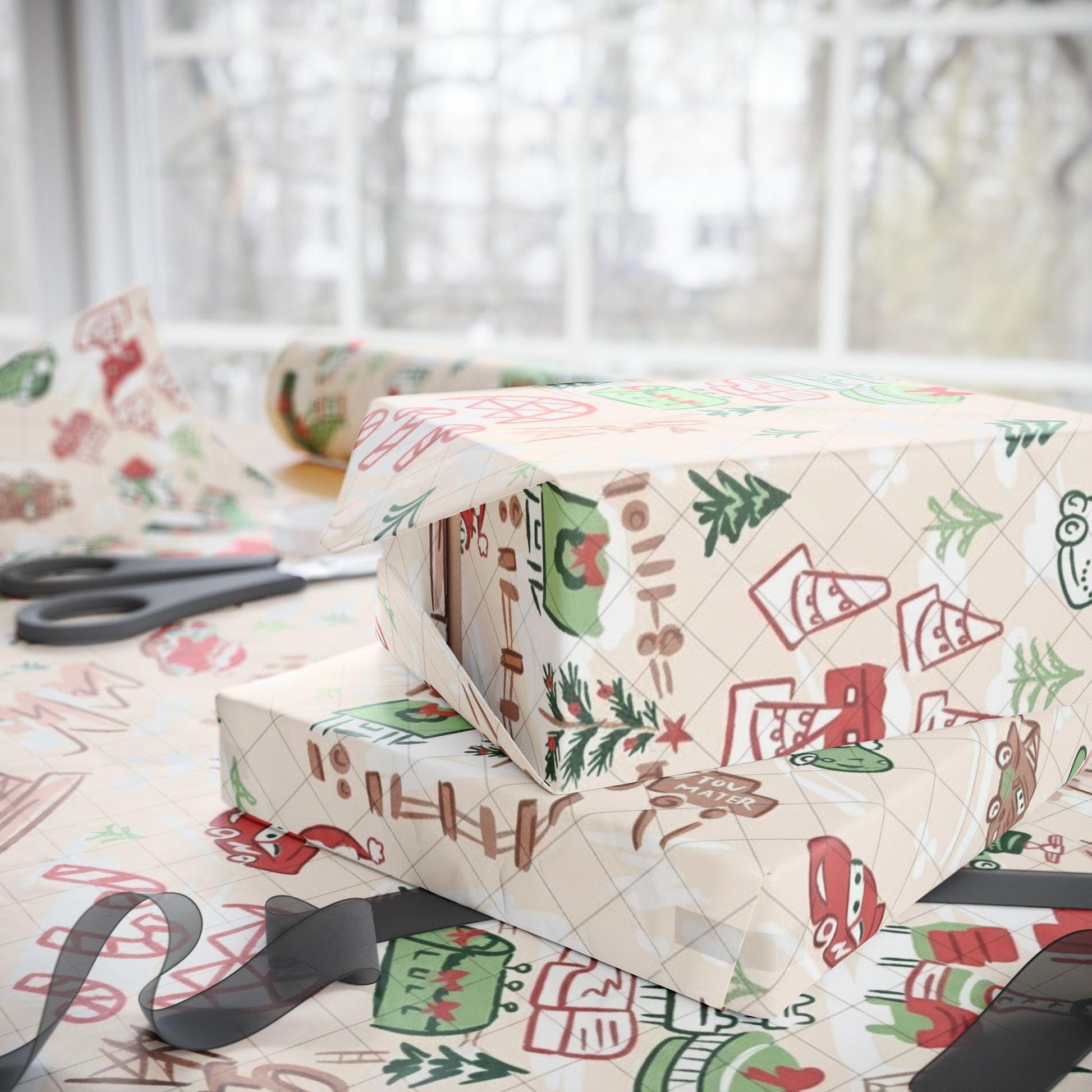 Gift wrap with nostalgic or small-town charm