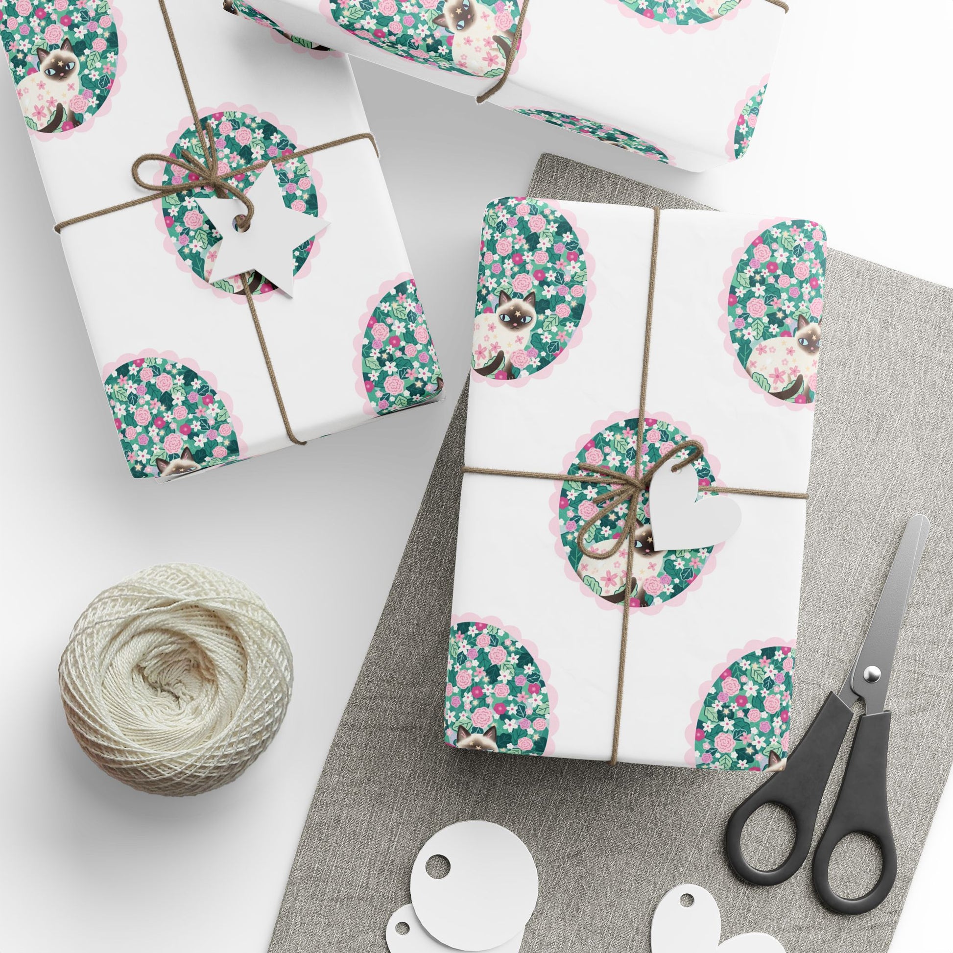 Siamese Cat Floral Wrapping Paper